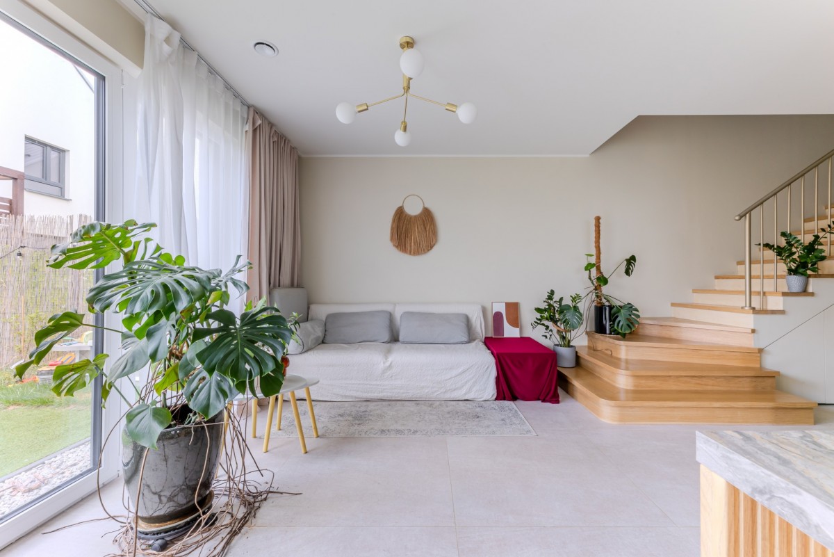 Miękkiego, wpadającego przez duże okna, odbijającego się od naturalnych materiałów i spokojnych kolorów.