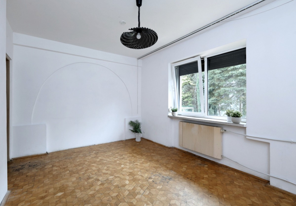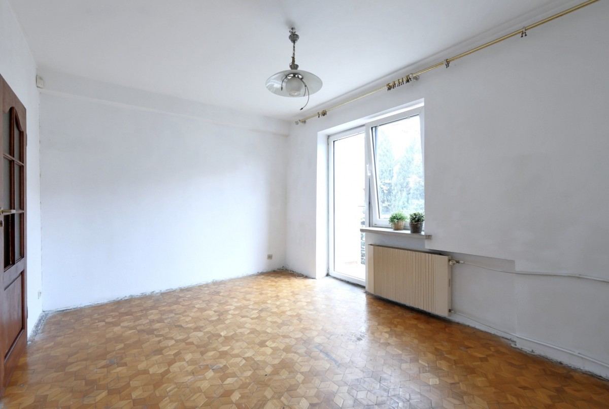 - salon (35m2) z wyjściem na taras- ekspozycja południowa słoneczna - Podzielony na dwa mniejsze pokoje - parkiet