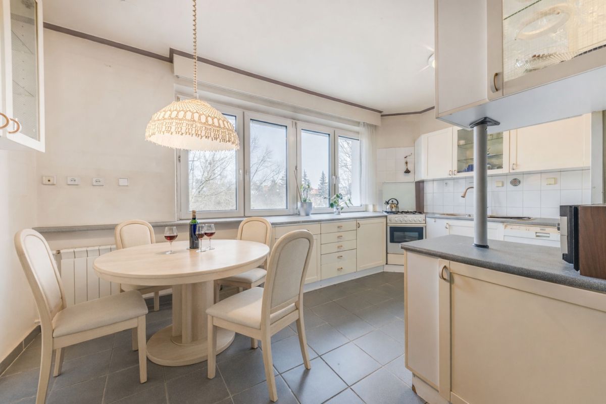 Dwustronny układ sprawia, że mieszkanie jest jasne, przewiewne i naturalnie doświetlone przez cały dzień. Pierwotnie cztery pokoje, a w wyniku zmian remontowych trzy plus jadalnia połączona z dużą , jasną kuchnią. Każde z pomieszczeń posiada niezależne wejście, co daje ogromną elastyczność - zarówno dla rodziny, jak i singli.
