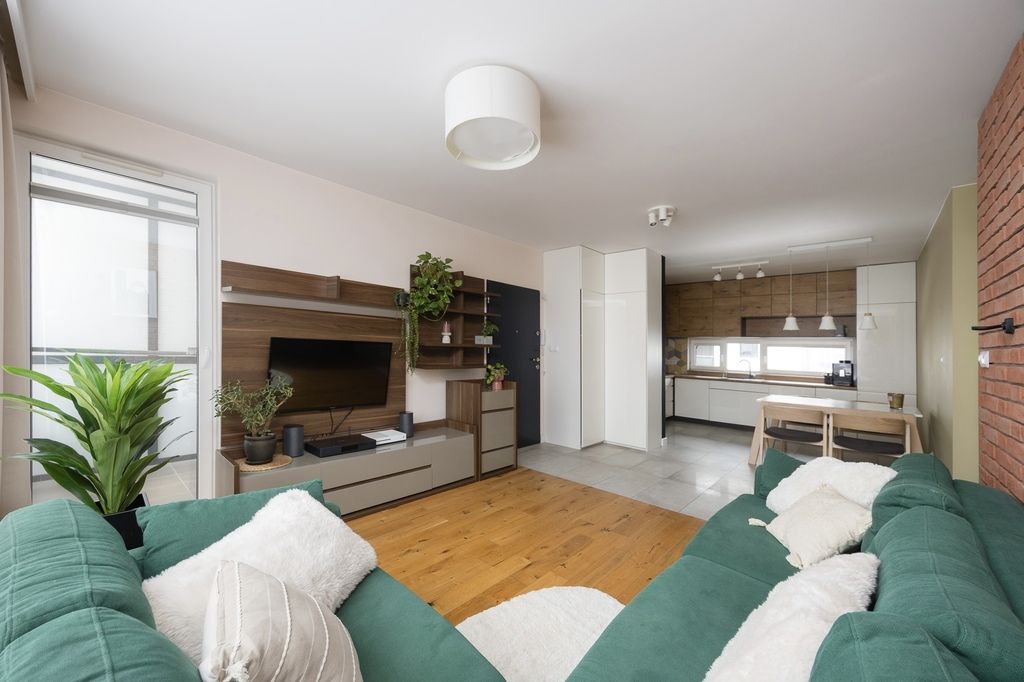 Mieszkanie idealne dla singli, par, rodzin i osób ceniących przestrzeń i komfort w bardzo dobrym stanie wizualnym i technicznym. Kupione od dewelopera w 2018 roku i wykończone z wykorzystaniem wysokiej jakości materiałów. Drzwi wejściowe antywłamaniowe, domofon i możliwość zamontowania alarmu. Dużą ilość naturalnego światła zapewniają od podłogi po sufit okna na trzy strony świata. Na podłodze w salonie i sypialniach wysokiej klasy deska podłogowa; w kuchni i łazience gres. Z salonu wyjście na przestronną loggie z dużą skrzynią do przechowywania rzeczy. Salon podzielony jest na strefę wypoczynkową i telewizyjną. Widna kuchnia z meblami na wymiar, markowym sprzętem AGD oraz blatami wykonanymi z drewna. Kuchnie i salon dzieli część jadalniana, w której zjesz wspólny rodzinny posiłek oraz wysokie szafy w zabudowie do przechowywania rzeczy. W przytulnych sypialniach znajdują się stylowe funkcjonalne meble i łóżka, a kształt pokoi w kwadracie pozwala na wiele aranżacji. W łazience znajduje się wanna, meble na wymiar, pralka, suszarka oraz WC. W łazience znajdziemy także okno, które przez cały dzień pozwala nam na jej doświetlenie oraz dobre przewietrzenie łazienki po kąpieli.. Dodatkowym atutem nieruchomości jest to, że na piętrze znajdują się tylko dwa mieszkania. Nieruchomością zarządza wspólnota, czynsz wynosi 240 zł z funduszem remontowym i śmieciami. Dodatkowo opłaty licznikowe.