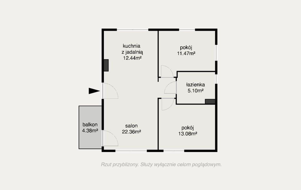 - otwarta kuchnia z jadalną (ok. 12,44m2),