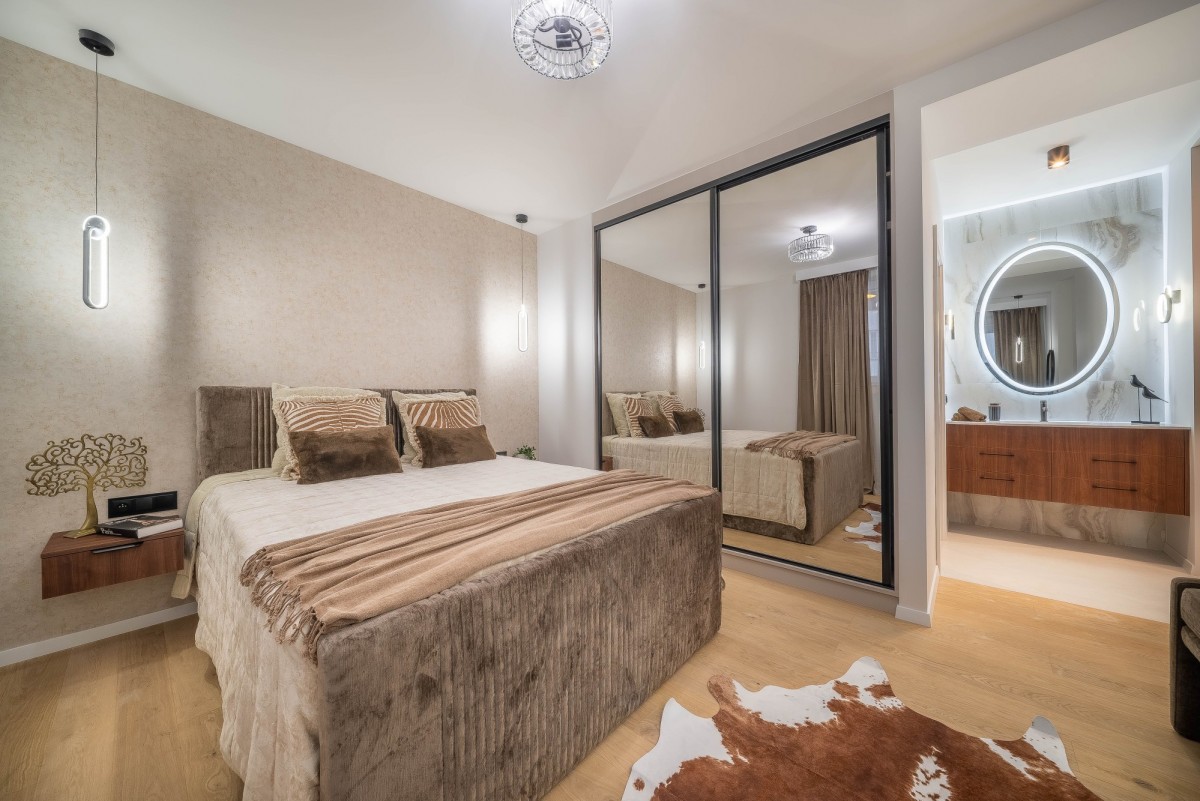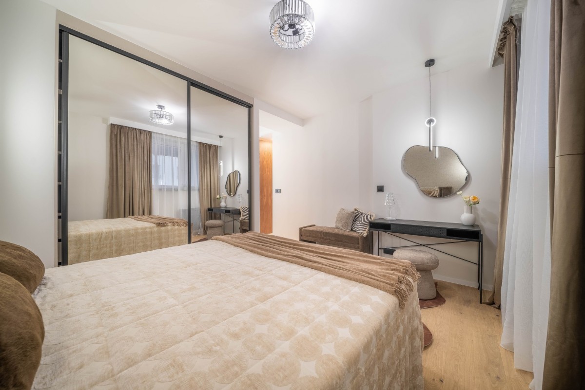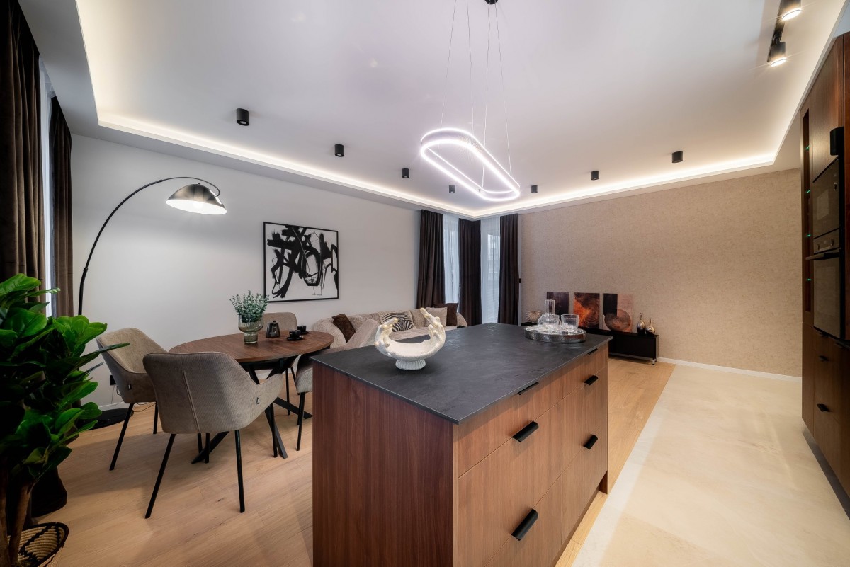 Apartament przeszedł generalny remont, przy użyciu materiałów wysokiej klasy, zadbano o ciekawy design i ponadczasowe dodatki.