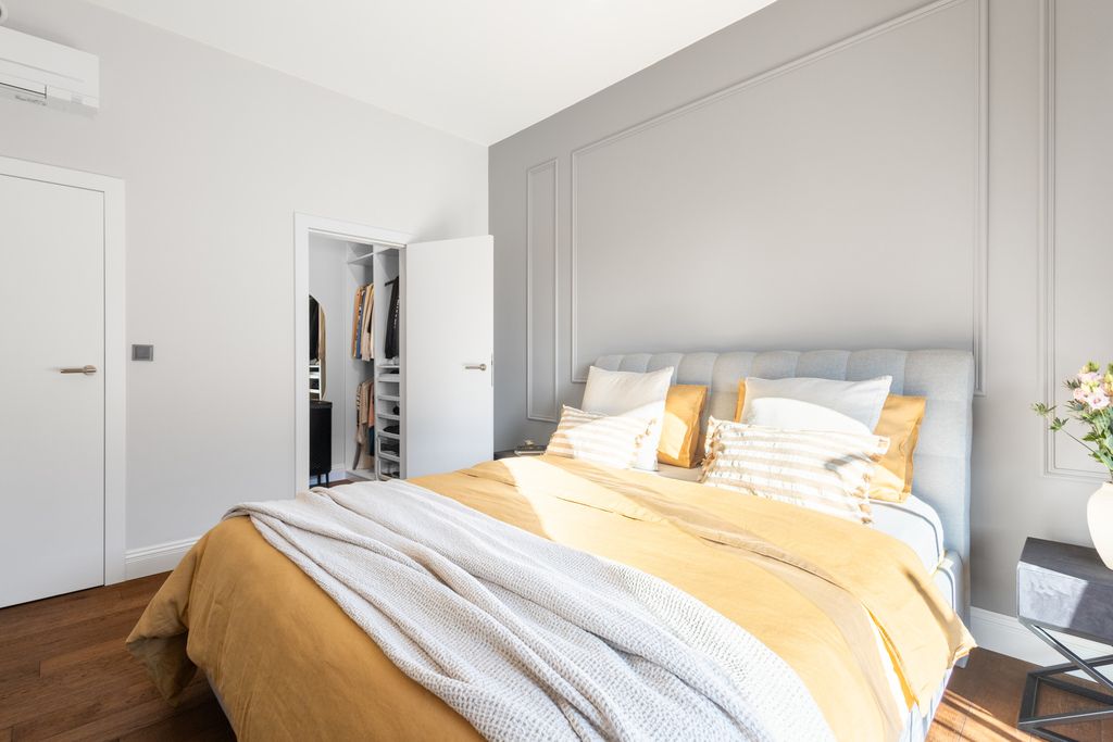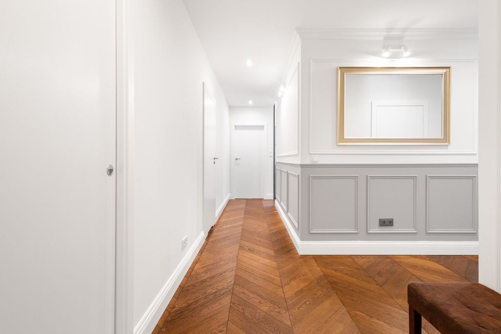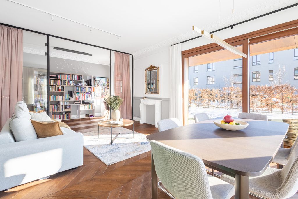 The apartment is designed in a neutral style, reminiscent of classic architecture. High-quality materials are used for the finishing touches, ensuring a comfortable stay. Natural wooden parquet floors give the interior a cozy and homely feel. Thanks to the numerous windows, the interiors are bright and well-lit, and each room opens onto a spacious terrace.