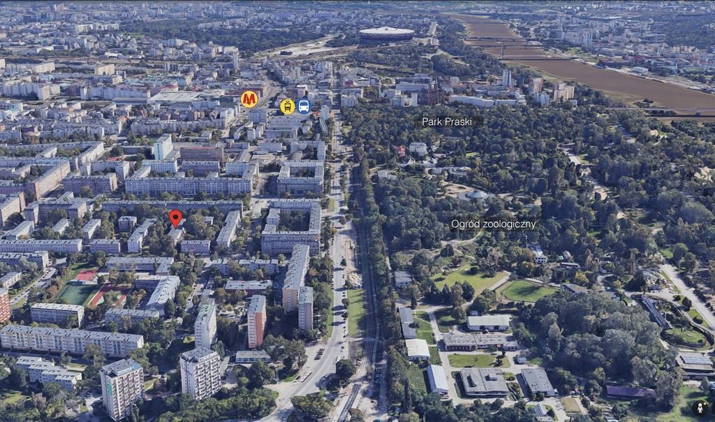 - Park Praski – ok. 7–8 minut pieszo,