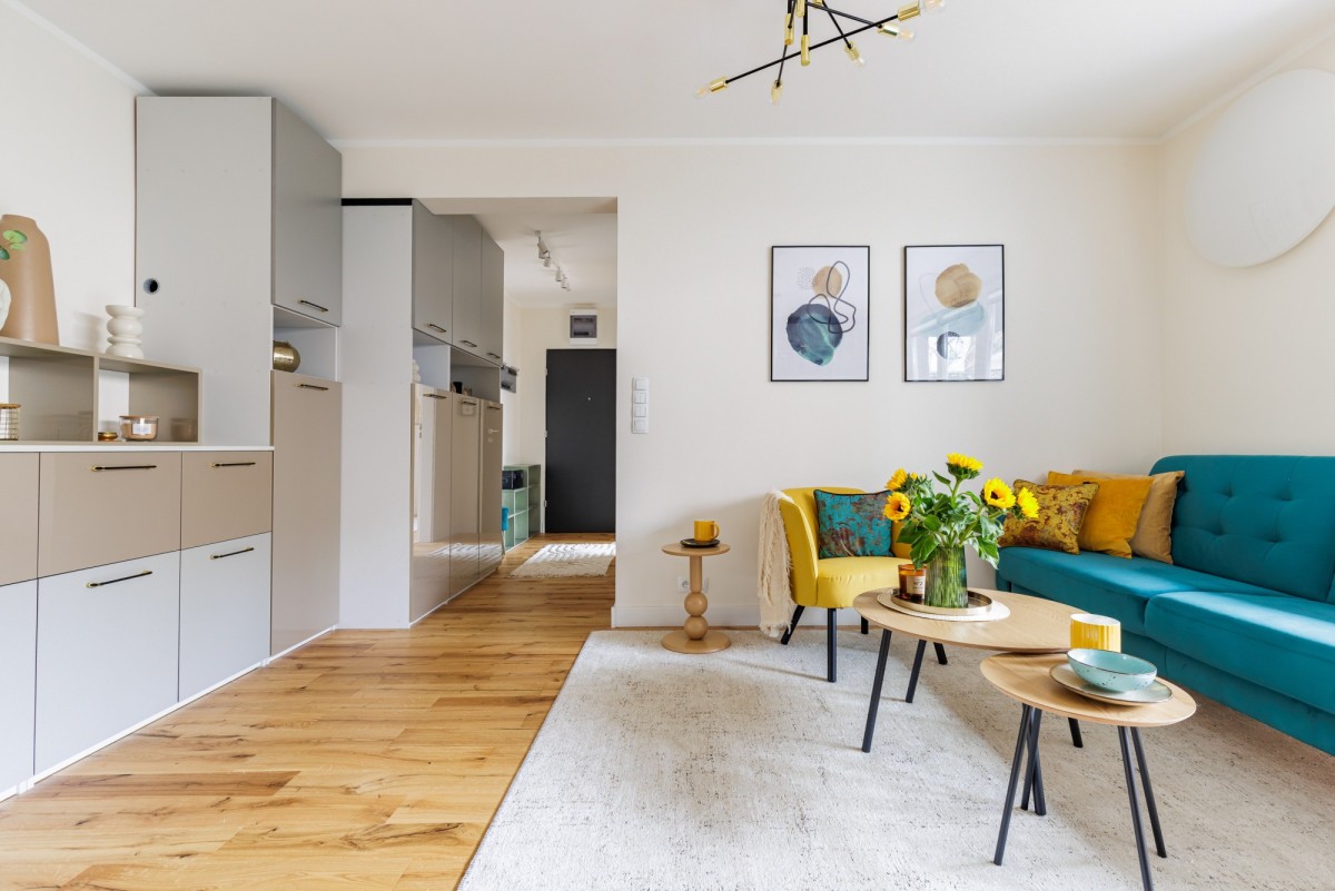 Mieszkanie łączy ze sobą trzy cechy pożądane przez Kupujących: przestrzeń, funkcjonalność i stylowe wykończenie.