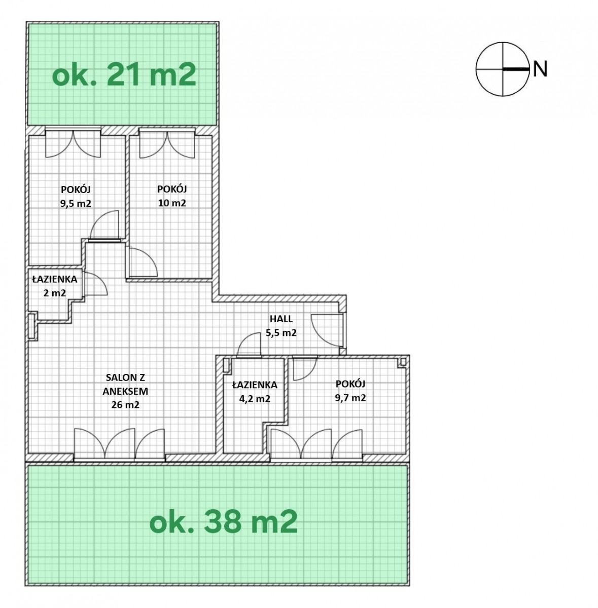 Apartament posiada dwa w pełni zagospodarowane ogródki o powierzchniach 38 m2 oraz 21 m2.