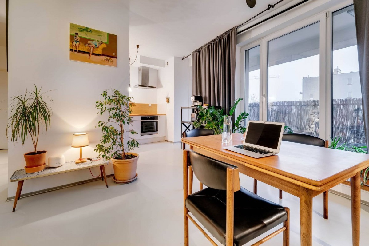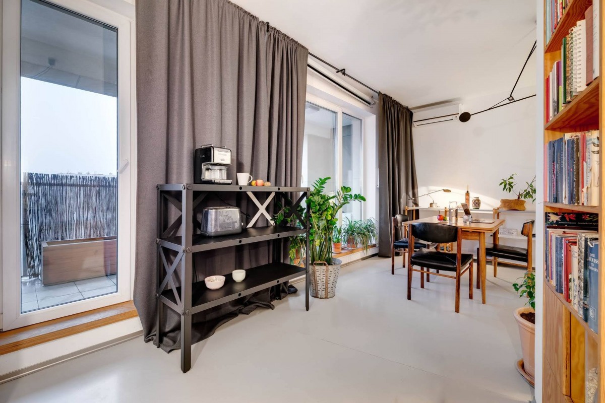 The 47.24 m² has been designed with attention to detail. The apartment features a modern resin floor and custom wooden cabinetry that adds warmth and cohesion. It is in excellent condition and does not require renovation, allowing you to focus solely on arranging the space to your taste.