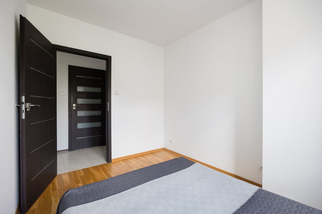 Dodatkowym atutem są trzy bardzo pojemne szafy w zabudowie, które zapewniają wygodne przechowywanie i pozwalają maksymalnie wykorzystać przestrzeń mieszkania. Podłogi w salonie wykończone zostały elegancką deską barlinecką, a w sypialniach klasycznym drewnianym parkietem, który dodaje wnętrzom ciepła i przytulności.