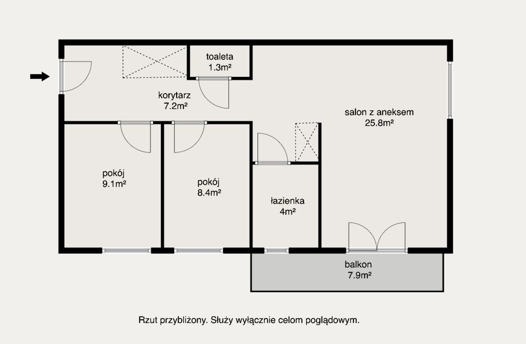 Dodatkowo do mieszkania przynależy loggia (7,9 m²) oraz dostęp do wspólnego, zagospodarowanego ogródka.