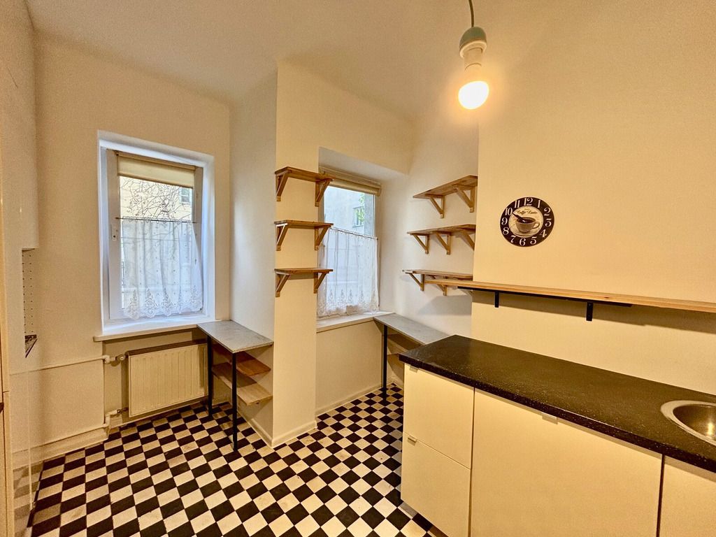 •Niezwykły klimat wnętrz — duże okna, drewniana podłoga, wysokie sufity oraz elementy zabudowy charakterystyczne dla kamienic.