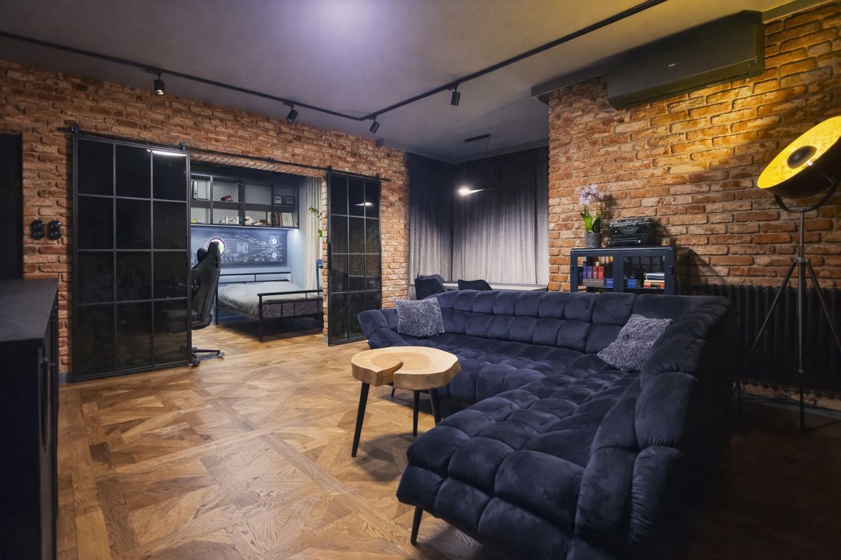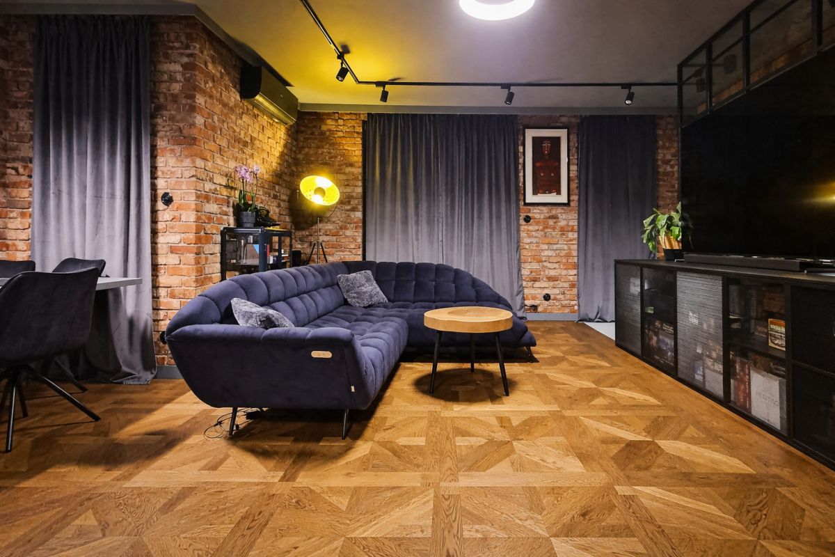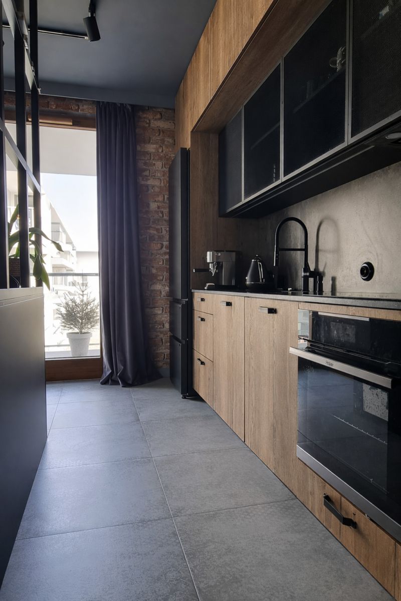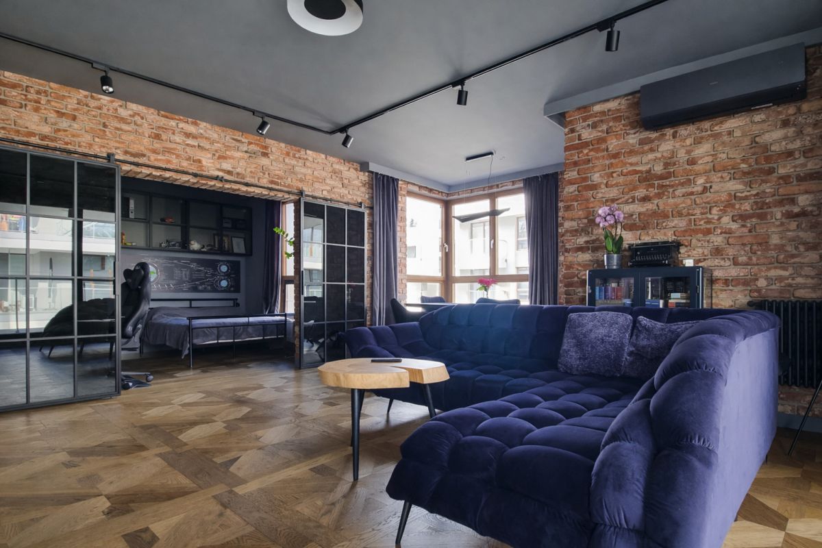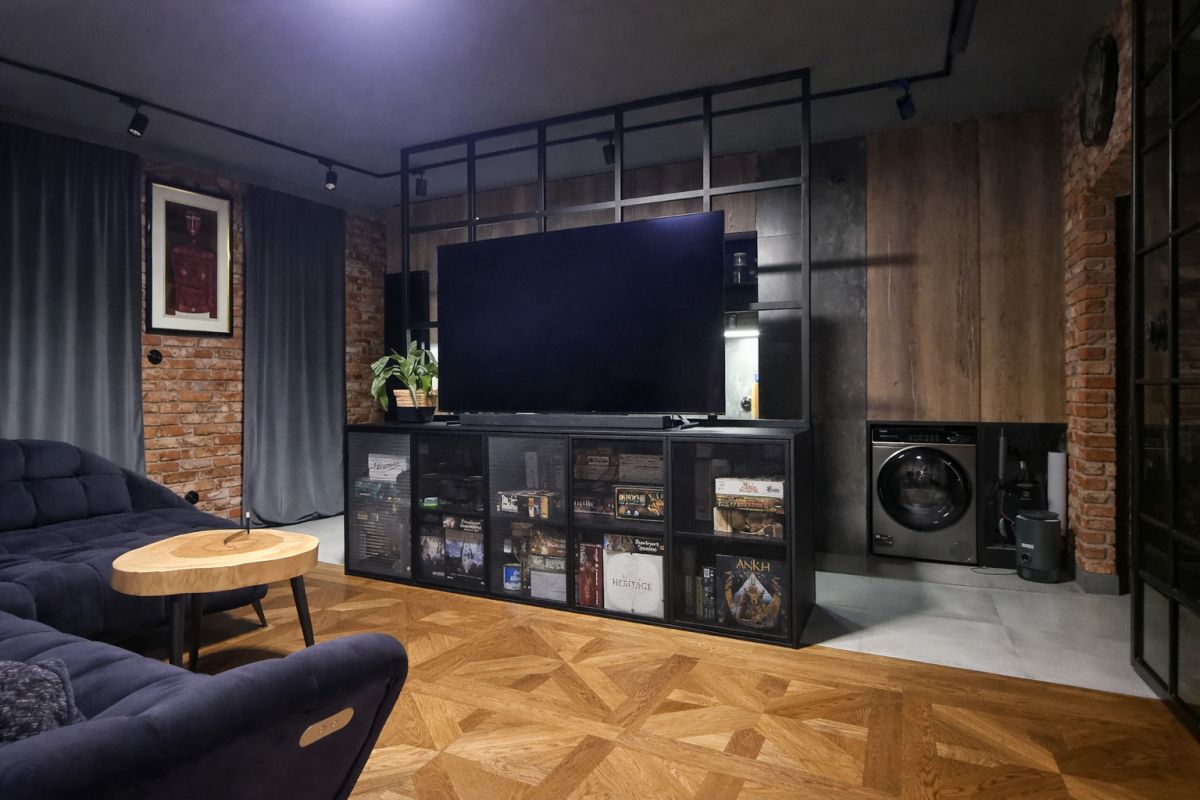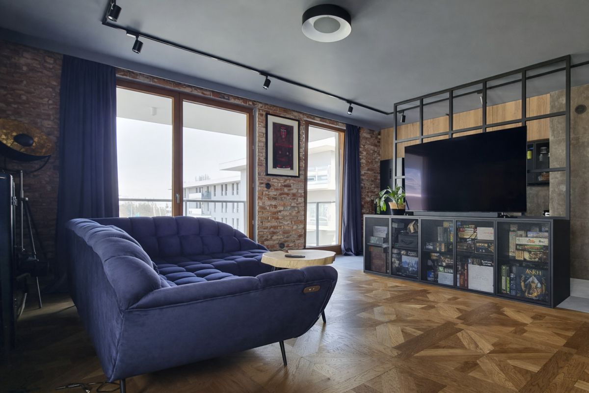 Wnętrze wyróżnia się spójnym, nowoczesnym charakterem. Naturalne drewno, cegła na ścianach, czarne detale, zabudowy wykonane na wymiar oraz wysokiej jakości materiały tworzą przestrzeń dopracowaną i gotową do zamieszkania bez dodatkowych nakładów. Mieszkanie jest w pełni wyposażone, posiada klimatyzację, a dzięki dwustronnej ekspozycji i dużej liczbie okien jest jasne, dobrze doświetlone i bardzo przyjemne w odbiorze.