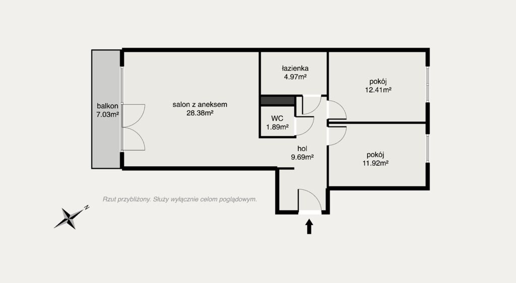 Nieruchomość o powierzchni 71,67 m2 składa się z następujących pomieszczeń:
