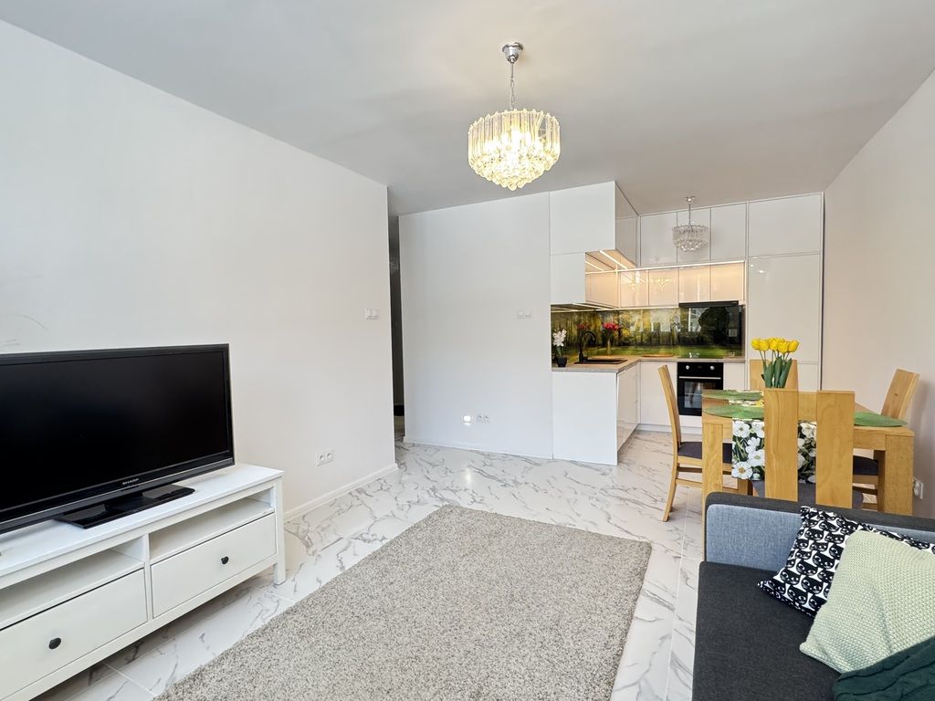Mieszkanie jest w pełni umeblowane i kompletnie wyposażone — gotowe do wprowadzenia bez dodatkowych nakładów.