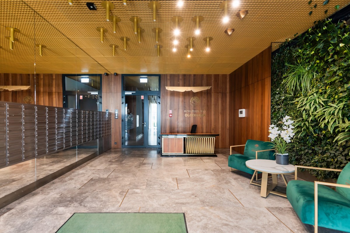 Apartamenty Ogrodowa 31 oferuje mieszkańcom wysoki poziom bezpieczeństwa oraz komfort życia - recepcję, ochronę oraz prywatną, zamkniętą przestrzeń.
