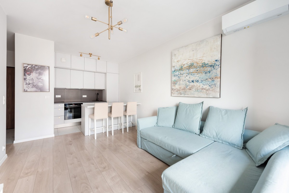 Apartament jest praktycznie jak nowy - świeży, pachnący, wykończony w bardzo wysokim standardzie, z dbałością o detale. W pełni wyposażony we wszystkie niezbędne sprzęty AGD oraz udogodnienia zapewniające komfortowe i wygodne życie na co dzień.