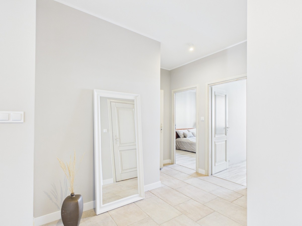 Mieszkanie jest świeżo odnowione i gotowe do zamieszkania. Wnętrza zostały odmalowane, a drewniana podłoga w salonie przeszła renowację, dzięki czemu całość prezentuje się bardzo estetycznie i przytulnie. Funkcjonalny układ pomieszczeń zapewnia wygodę zarówno dla rodziny, jak i pod kątem inwestycyjnym. Centralnym punktem mieszkania jest jasny salon z aneksem kuchennym, który stanowi idealną przestrzeń do codziennego życia i spotkań. Dwie ustawne sypialnie oferują komfortowy wypoczynek, a łazienka oraz oddzielne WC (obecnie pełni funkcję garderoby) zwiększają wygodę użytkowania. Całość uzupełnia praktyczny przedpokój oraz balkon, który świetnie sprawdzi się jako miejsce na poranną kawę.