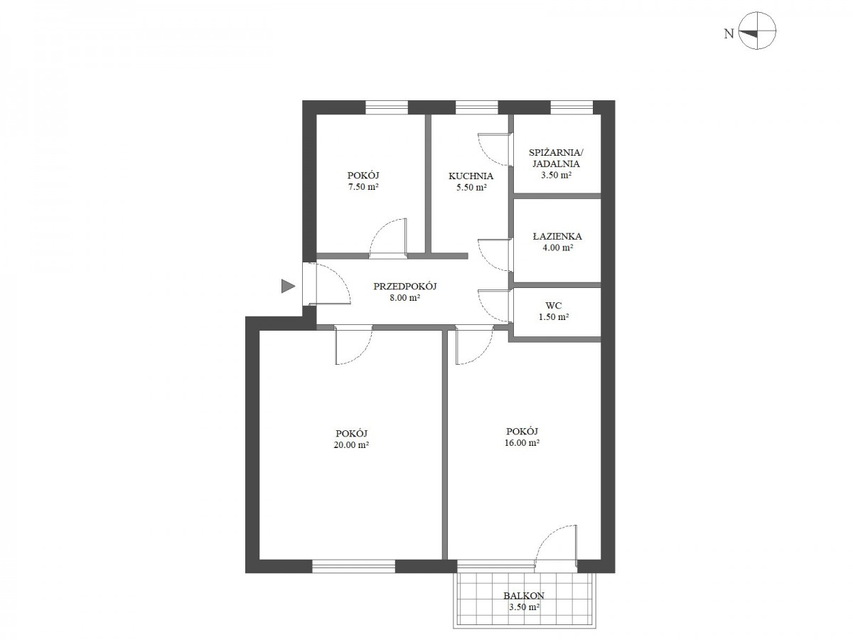 - pokój ok. 16 m² z wyjściem na balkon (ok. 3,5 m²),