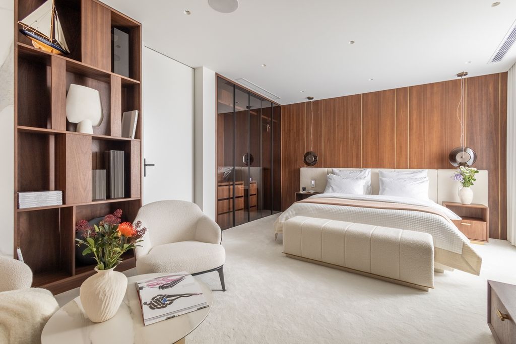 Top quality materials have been used to finish the interiors: wood, natural stone, the kitchen has been equipped with appliances from the world's top brands. Panoramic floor-to-ceiling windows (with higher standard of acoustic and thermal insulation) make the rooms bright, well-lit and give an extraordinary sense of space.