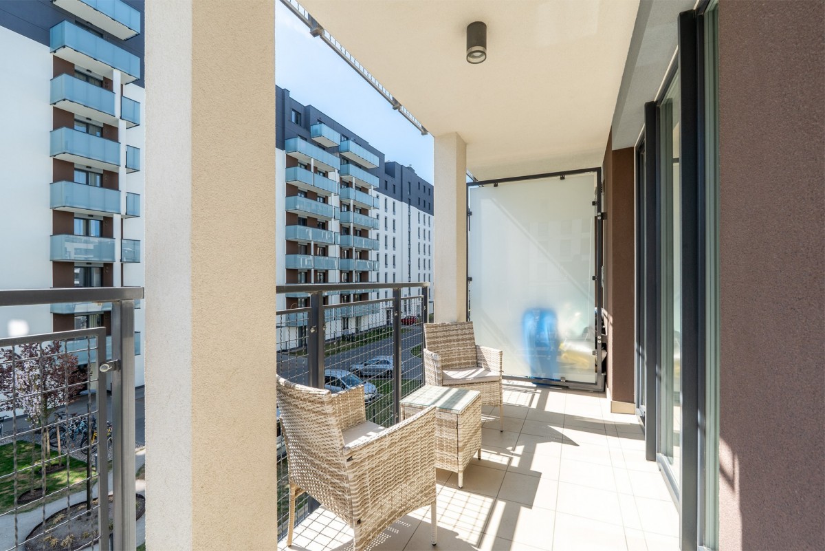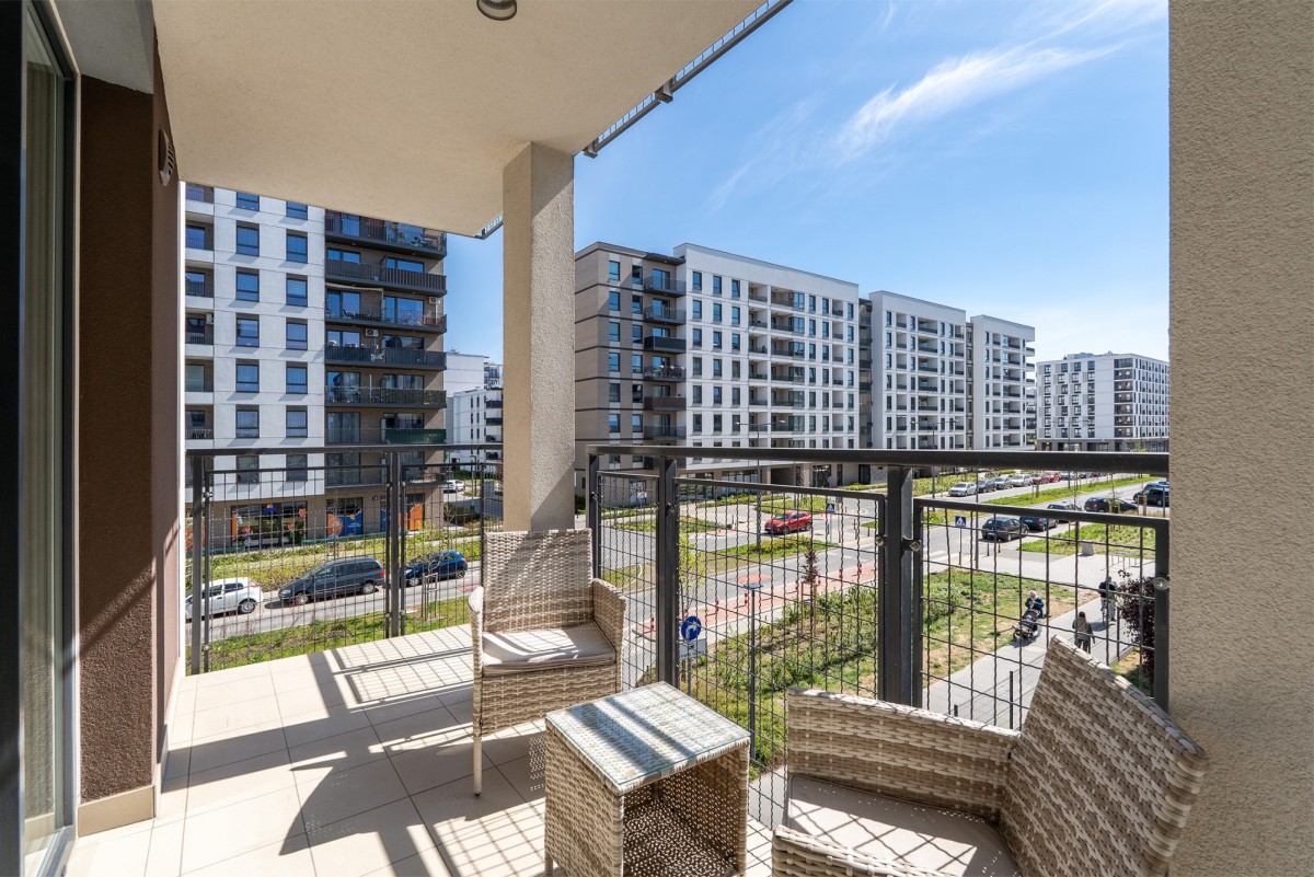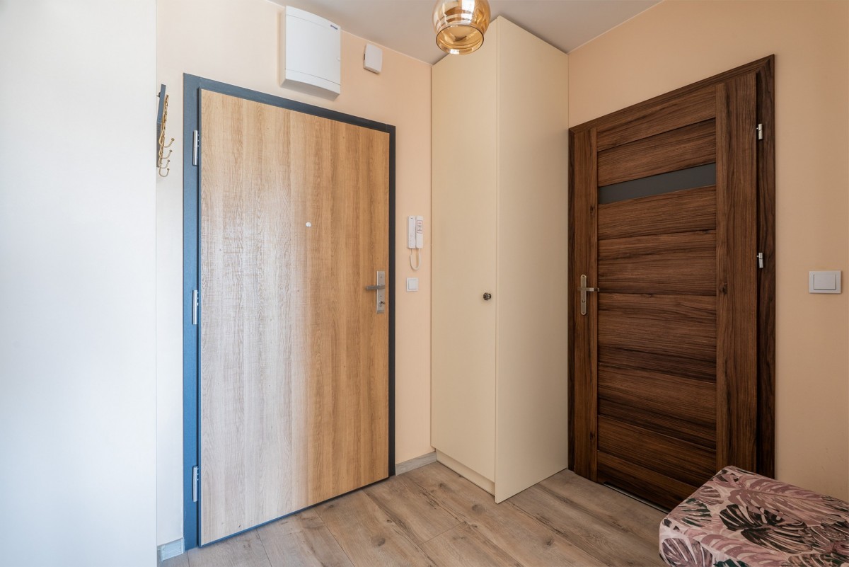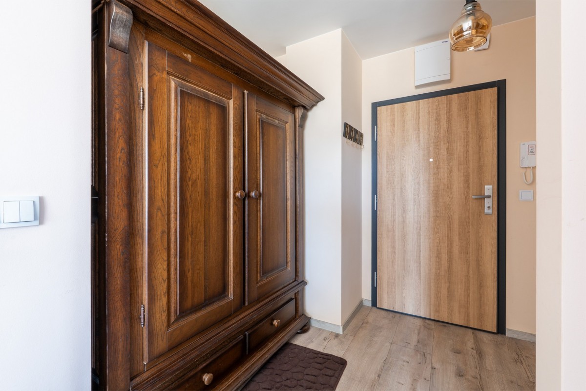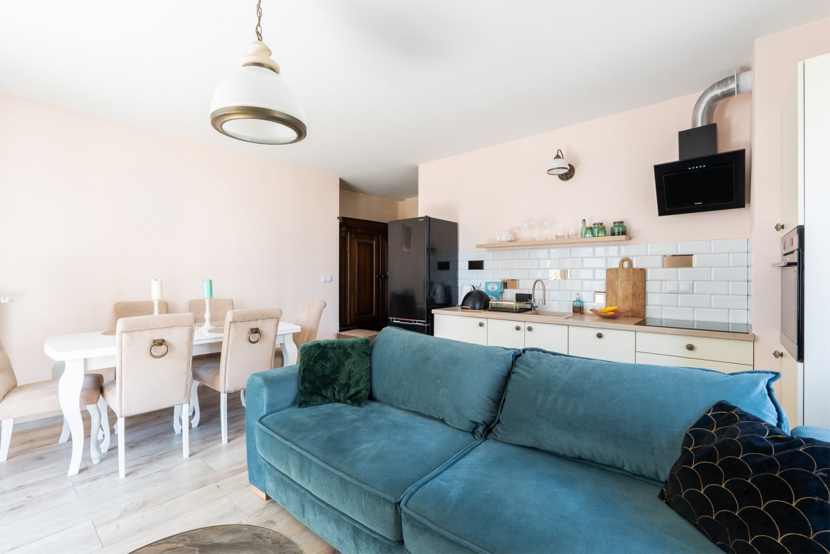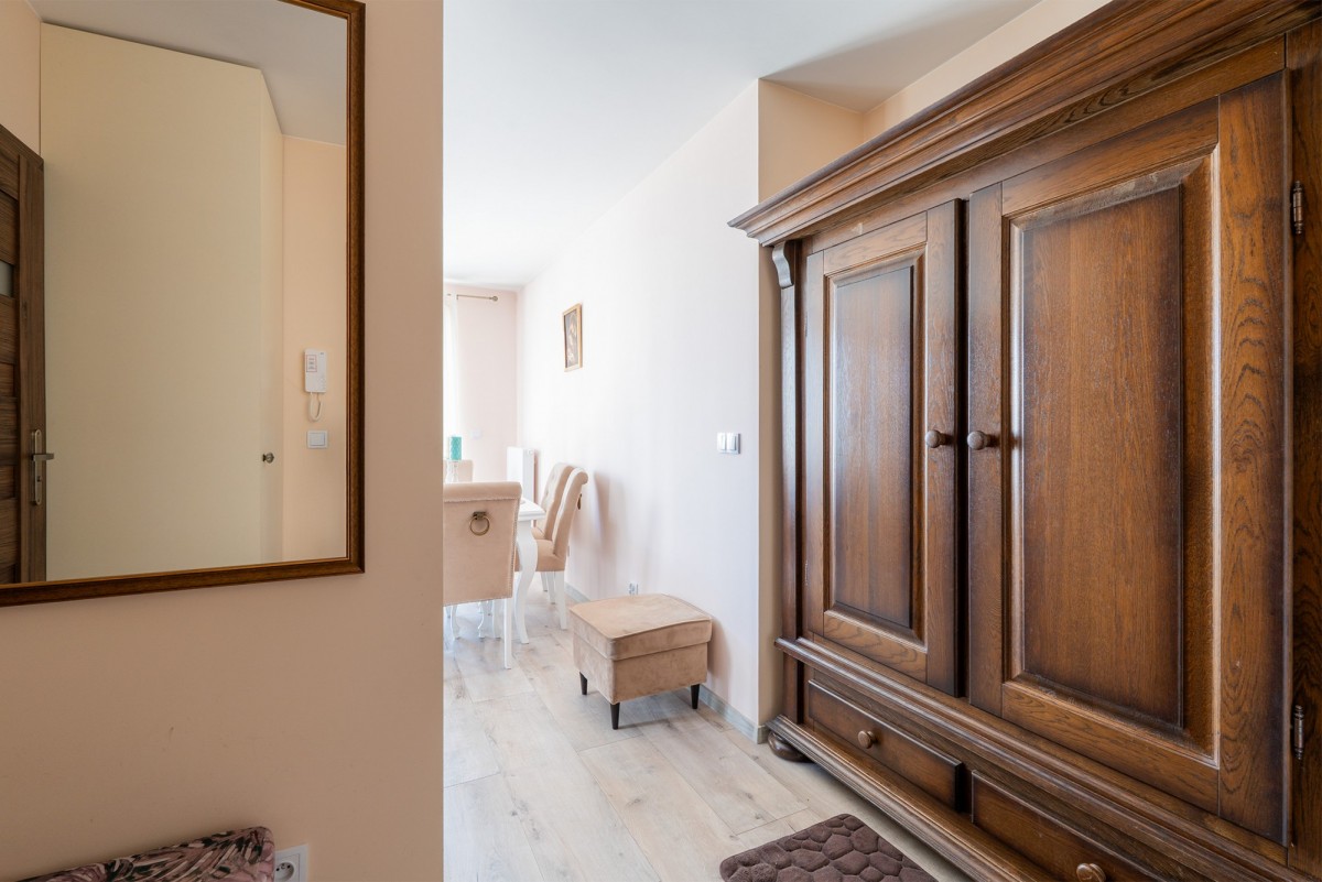 Wnętrze zostało zaprojektowane w unikalnym, stylowym charakterze z wykorzystaniem oryginalnych drewnianych mebli, które nadają całości charakteru i elegancji. Do lokalu przynależy przestronny balkon o powierzchni, który stanowi idealne miejsce do wypoczynku i cieszenia się słońcem o poranku.
