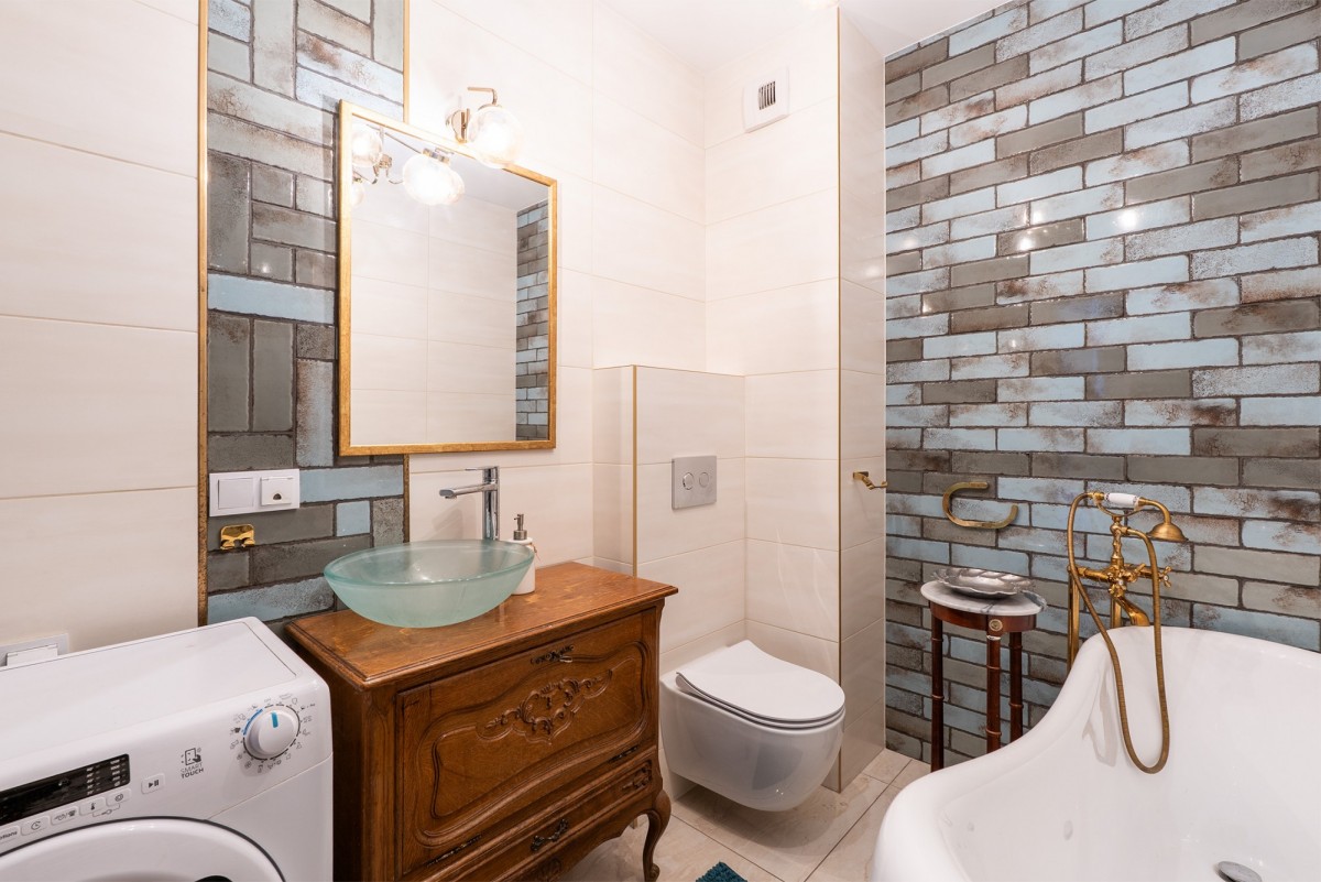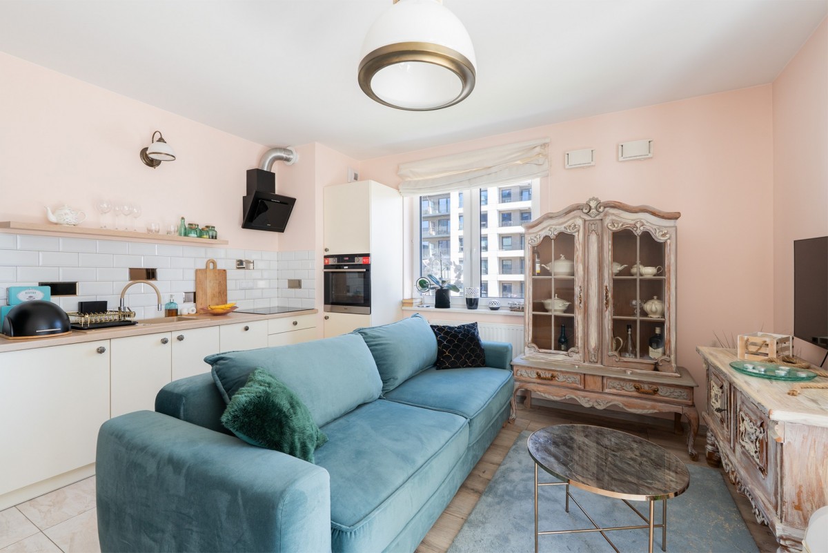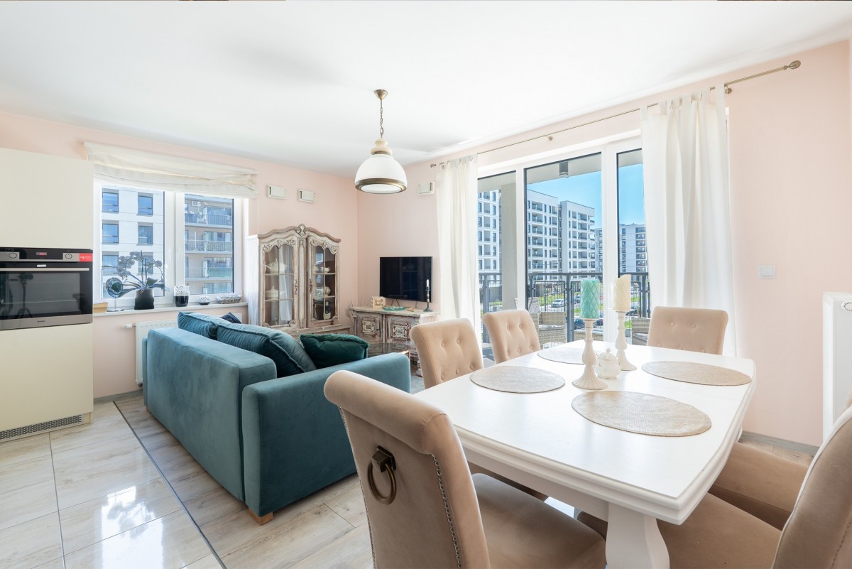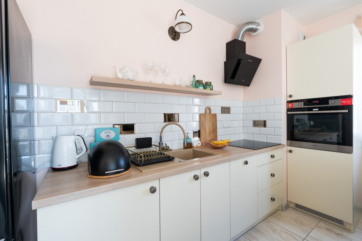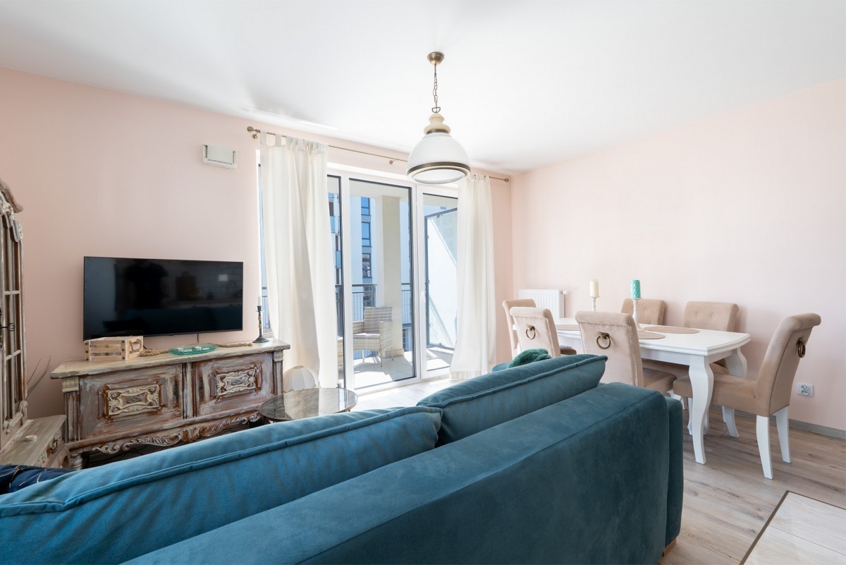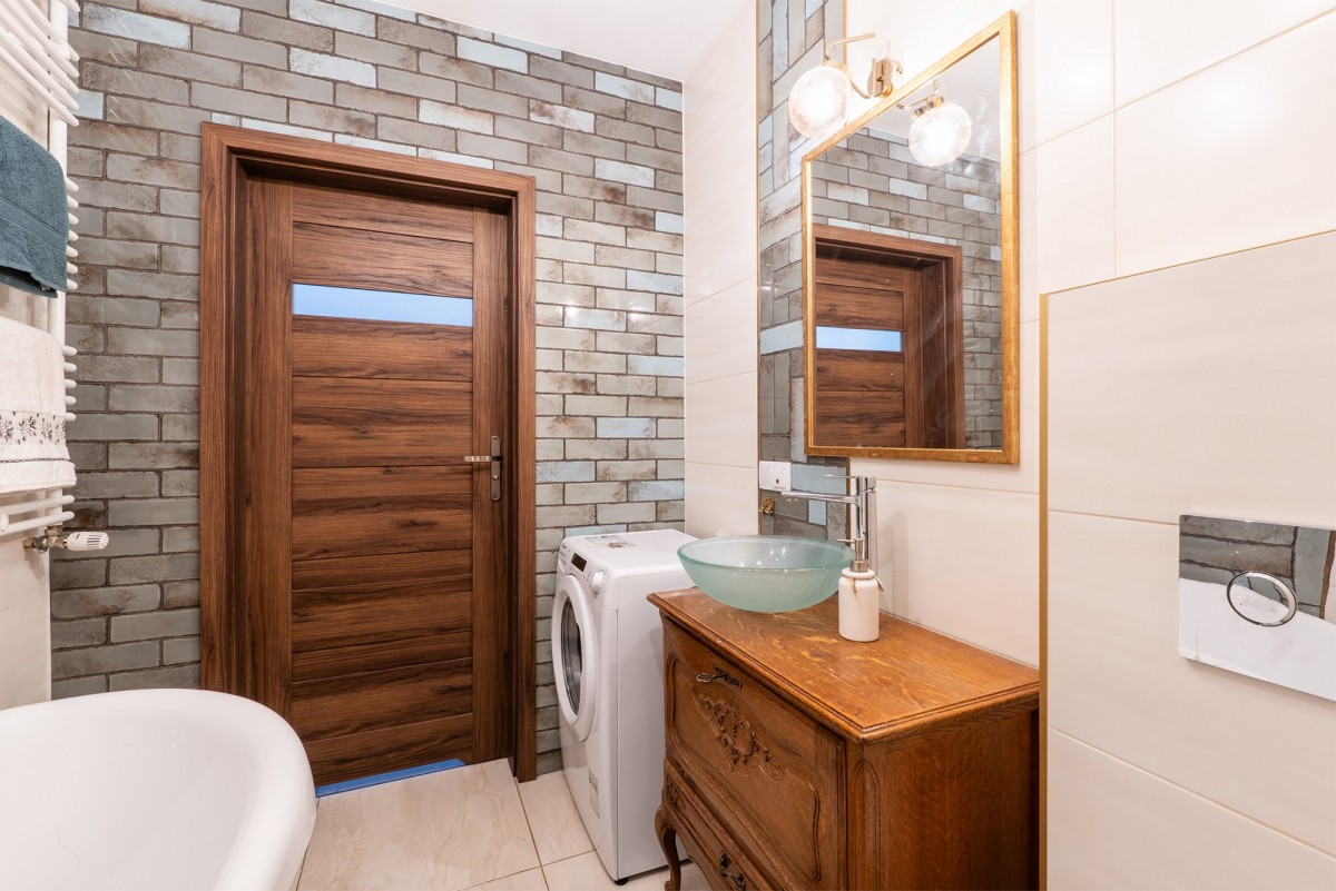 Wnętrze zostało zaprojektowane w unikalnym, stylowym charakterze z wykorzystaniem oryginalnych drewnianych mebli, które nadają całości charakteru i elegancji. Do lokalu przynależy przestronny balkon o powierzchni, który stanowi idealne miejsce do wypoczynku i cieszenia się słońcem o poranku.