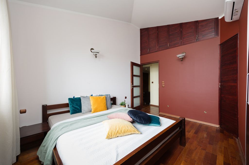 The apartment is situated on the top floor of an intimate residential building, within a gated community, including a parking space in the underground garage. The maximum ceiling height reaches an impressive 3.8 meters, creating an exceptional sense of space and light. The windows offer a beautiful panoramic view of the city center and stunning sunrises.