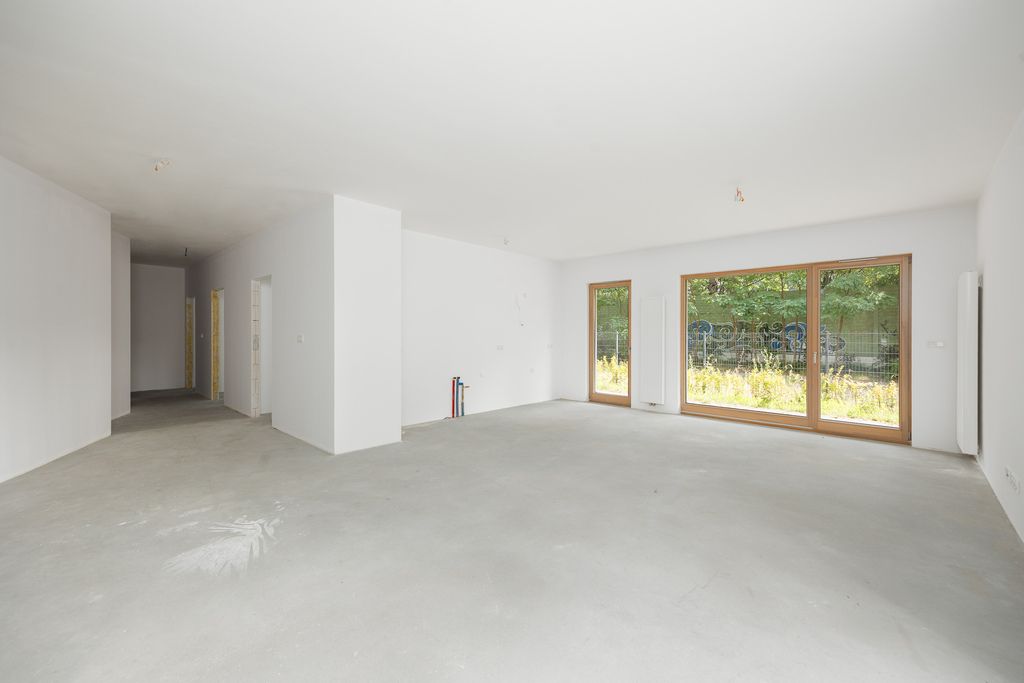One of the main highlights of the apartment is the large wooden windows and direct access to the garden from every room. The apartment is located on the quiet side of the building, away from busy streets. It is offered in developer standard, providing the new owner with full freedom to arrange the interiors. The functional layout, high-quality construction, and above-standard ceiling height of 280 cm make the space feel open and full of potential.