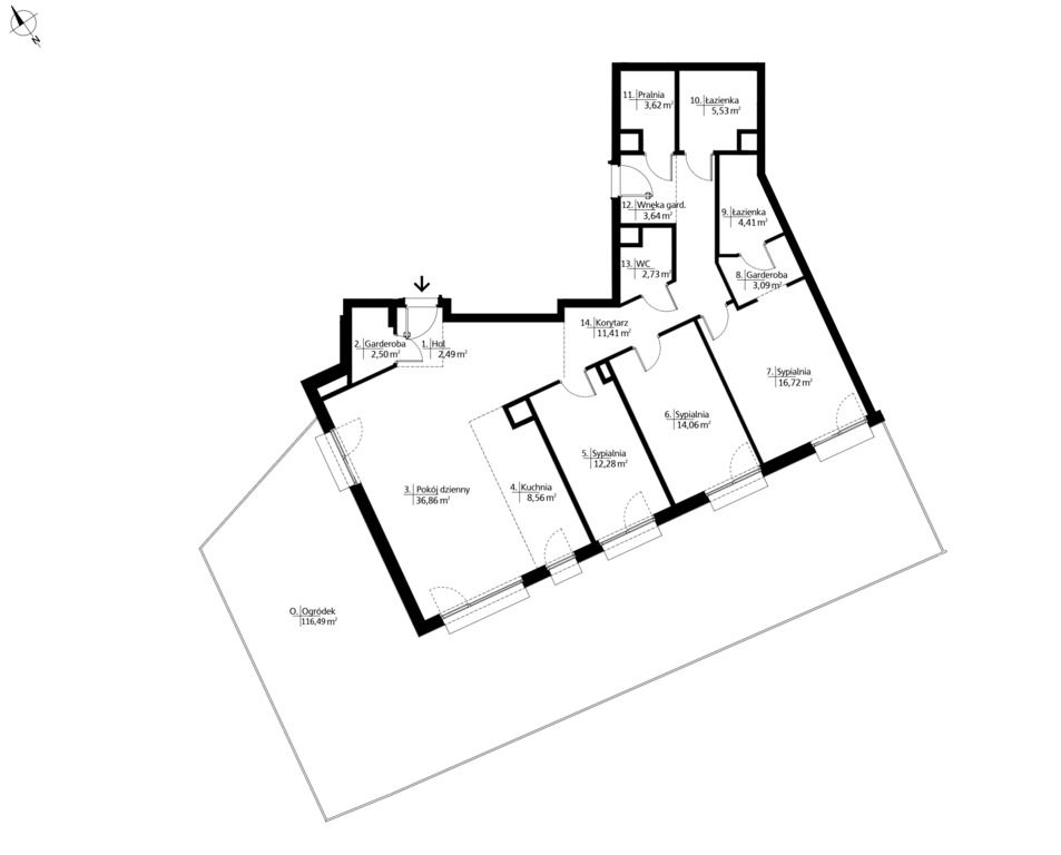 - sypialnia (16,72 m2) z garderobą (3,09 m2) i łazienką (4,41 m2),
