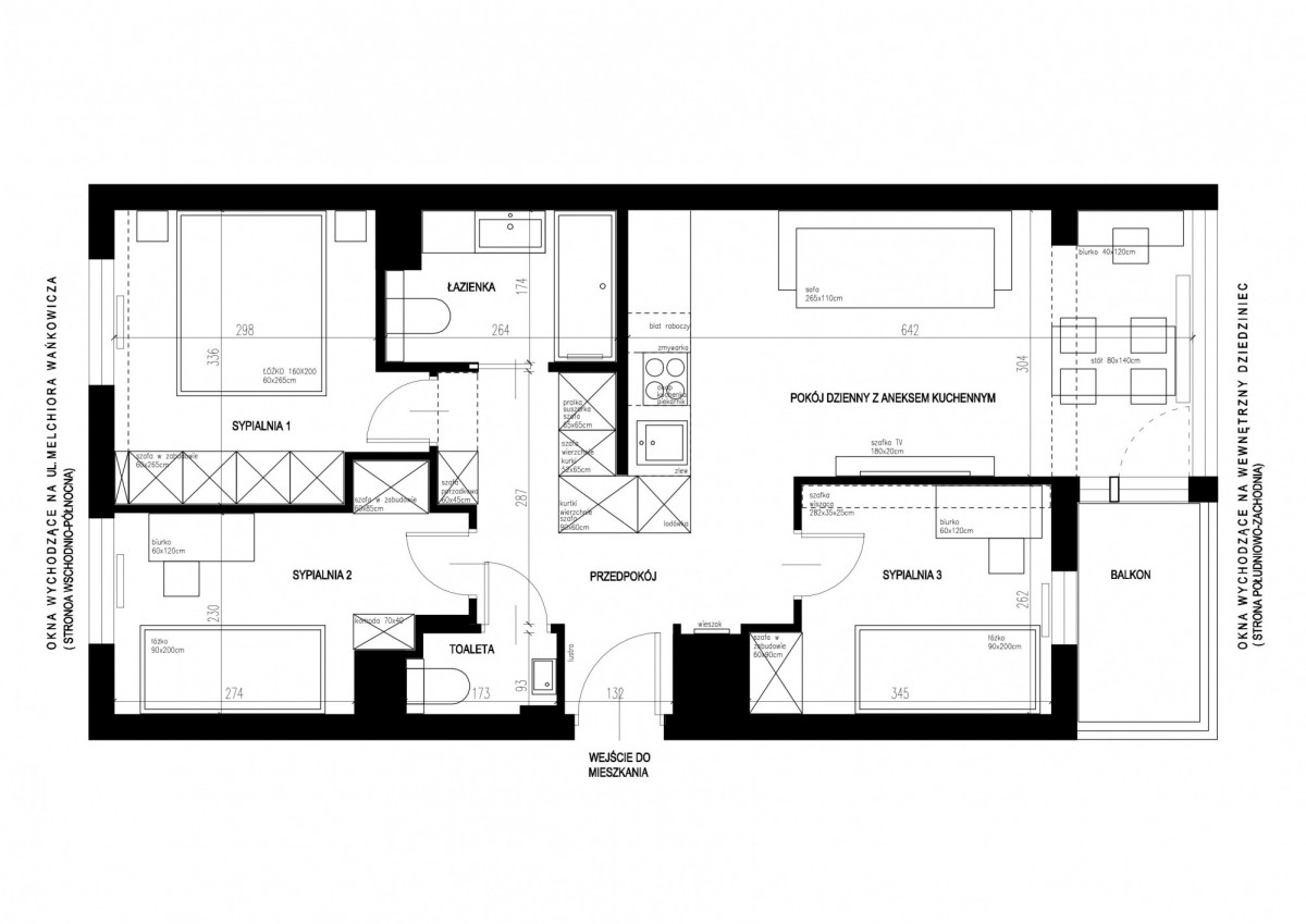 • dwie sypialnie - wschód (ul. Wańkowicza)