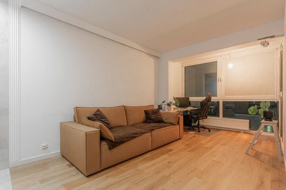 Mieszkanie przeszło generalny remont w 2024 roku - wymieniono instalacje wodno-kanalizacyjne i elektryczne, wykonano nowe podłogi, gładzie oraz zabudowy stolarskie na wymiar. Projekt został przygotowany we współpracy z architektem.