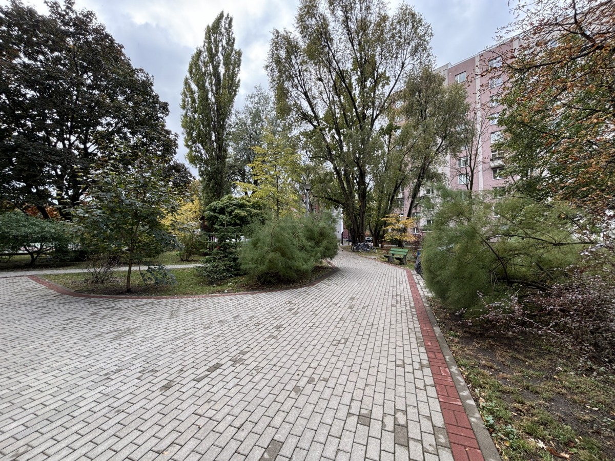 Mieszkanie ciche, z ładnym widokiem na oddalone budynki oraz piękną, starą zieleń.
