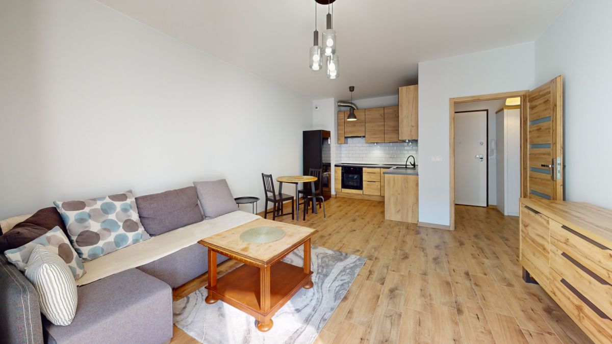- Salon z aneksem kuchennym- pełne AGD, strefa jadalniana i wypoczynkowa, wyjście na duży balkon,
