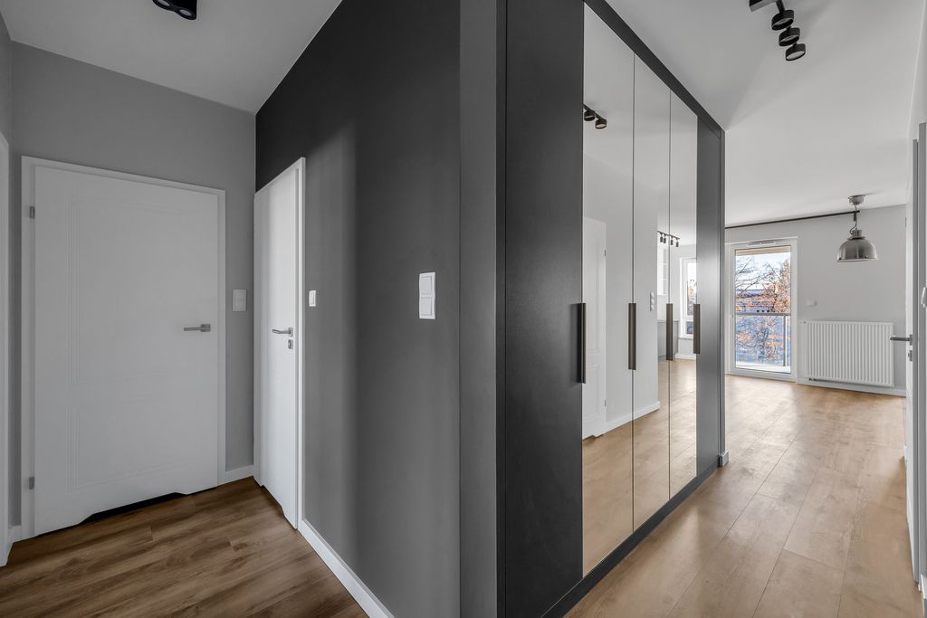 - korytarza, z szafą w zabudowie oferującą sporo miejsca do przechowywania.