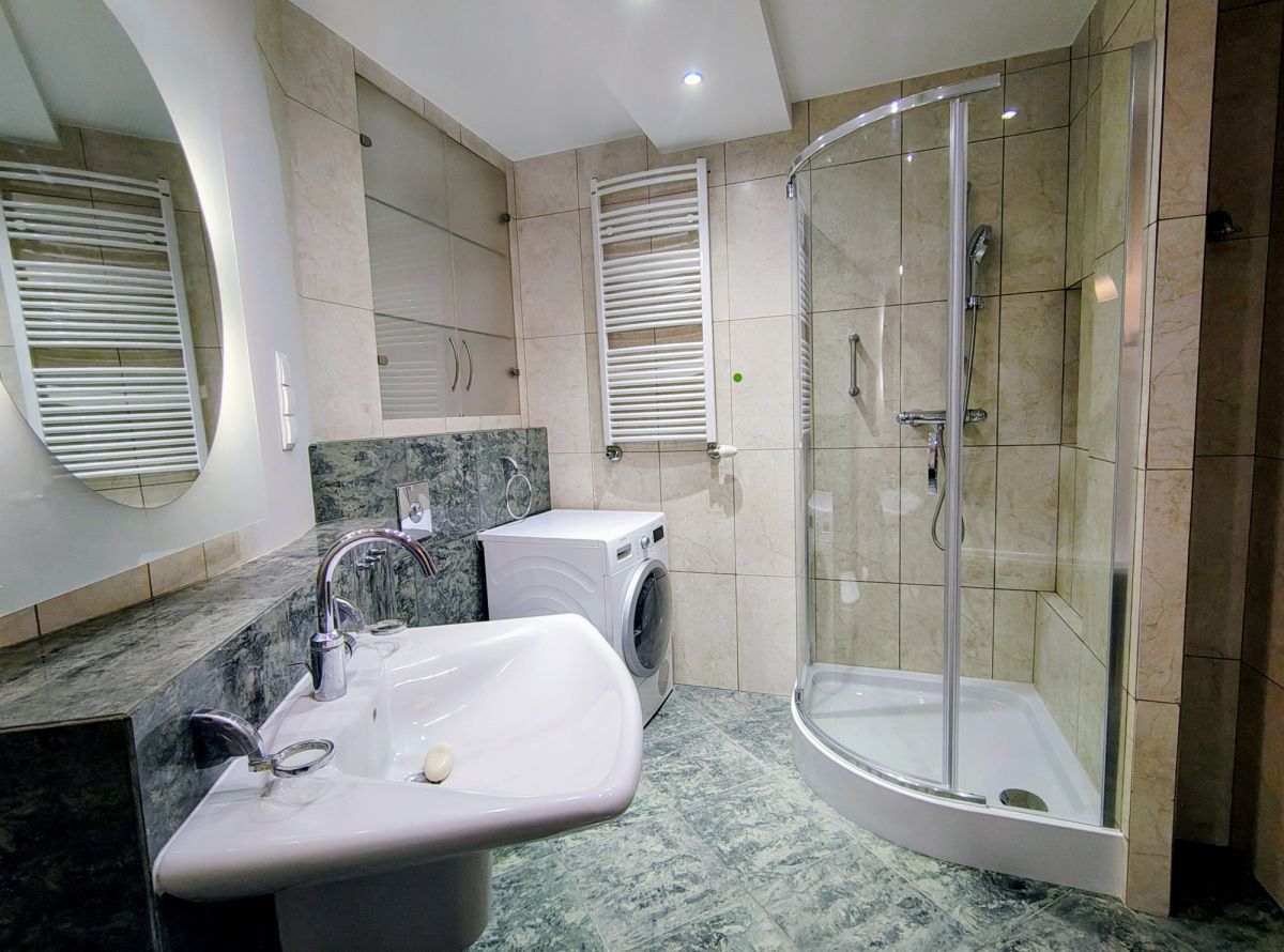 dwie łazienki (wanna i nowy prysznic) + łazienka z prysznicem